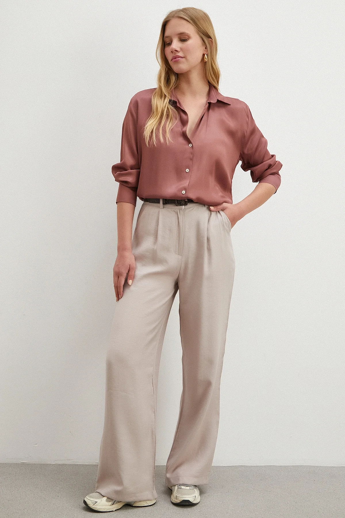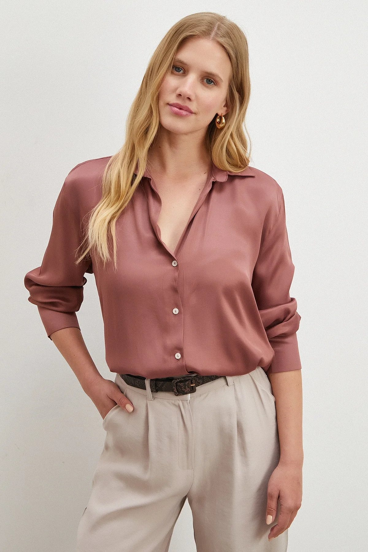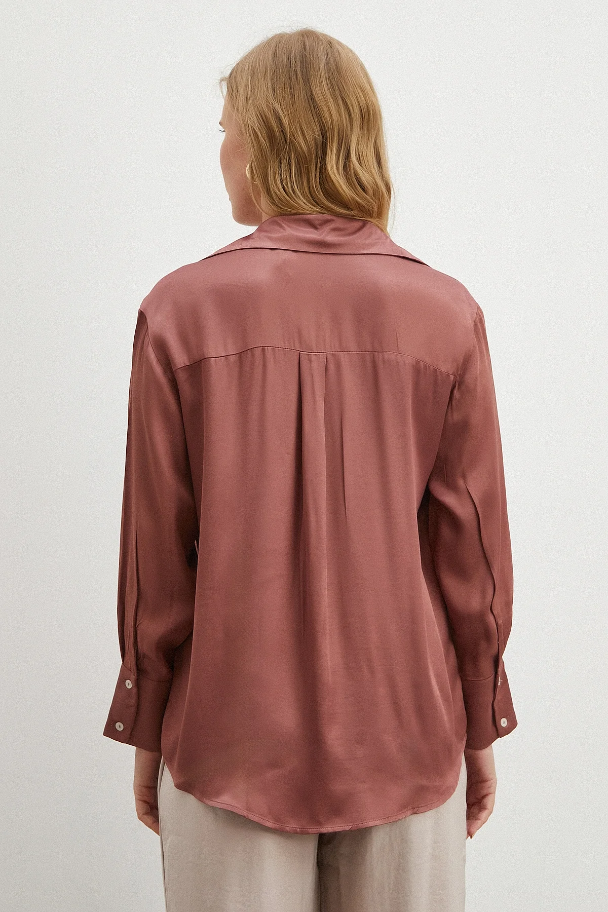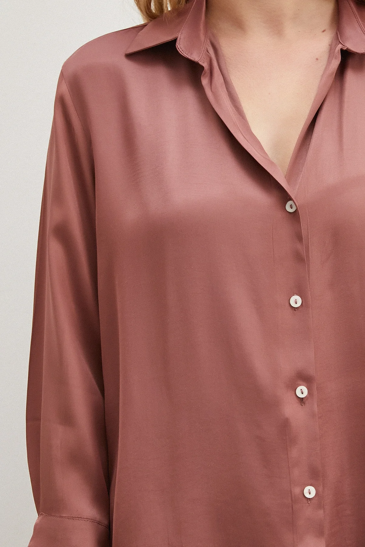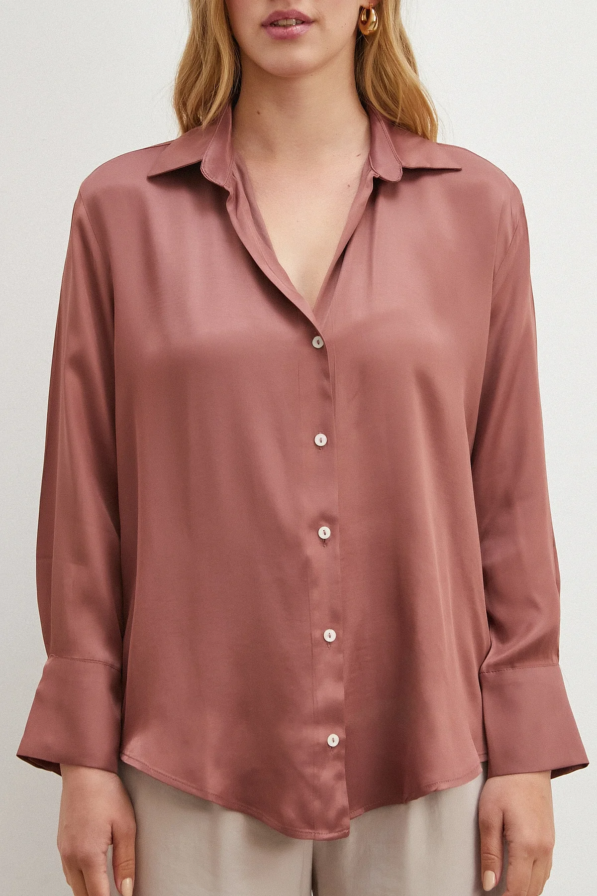 Viskon Saten Gömlek - Gül Kurusu