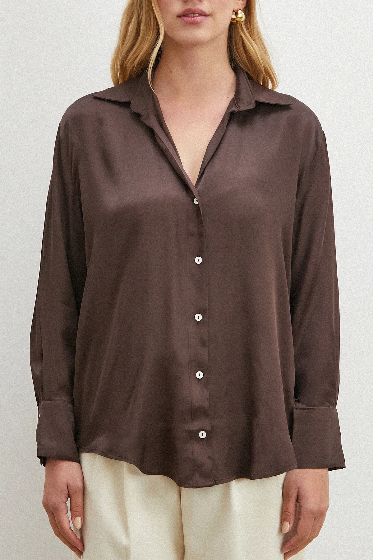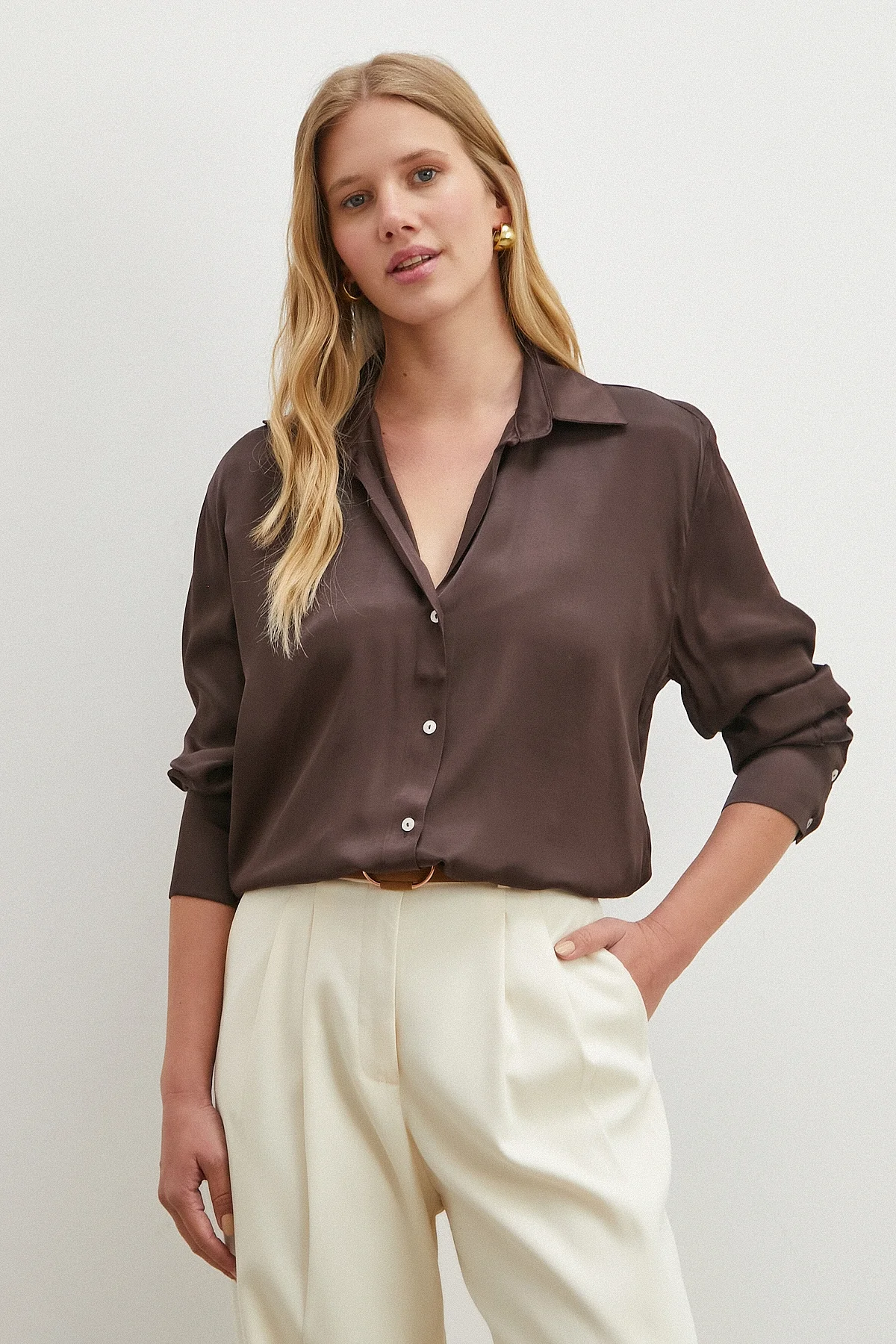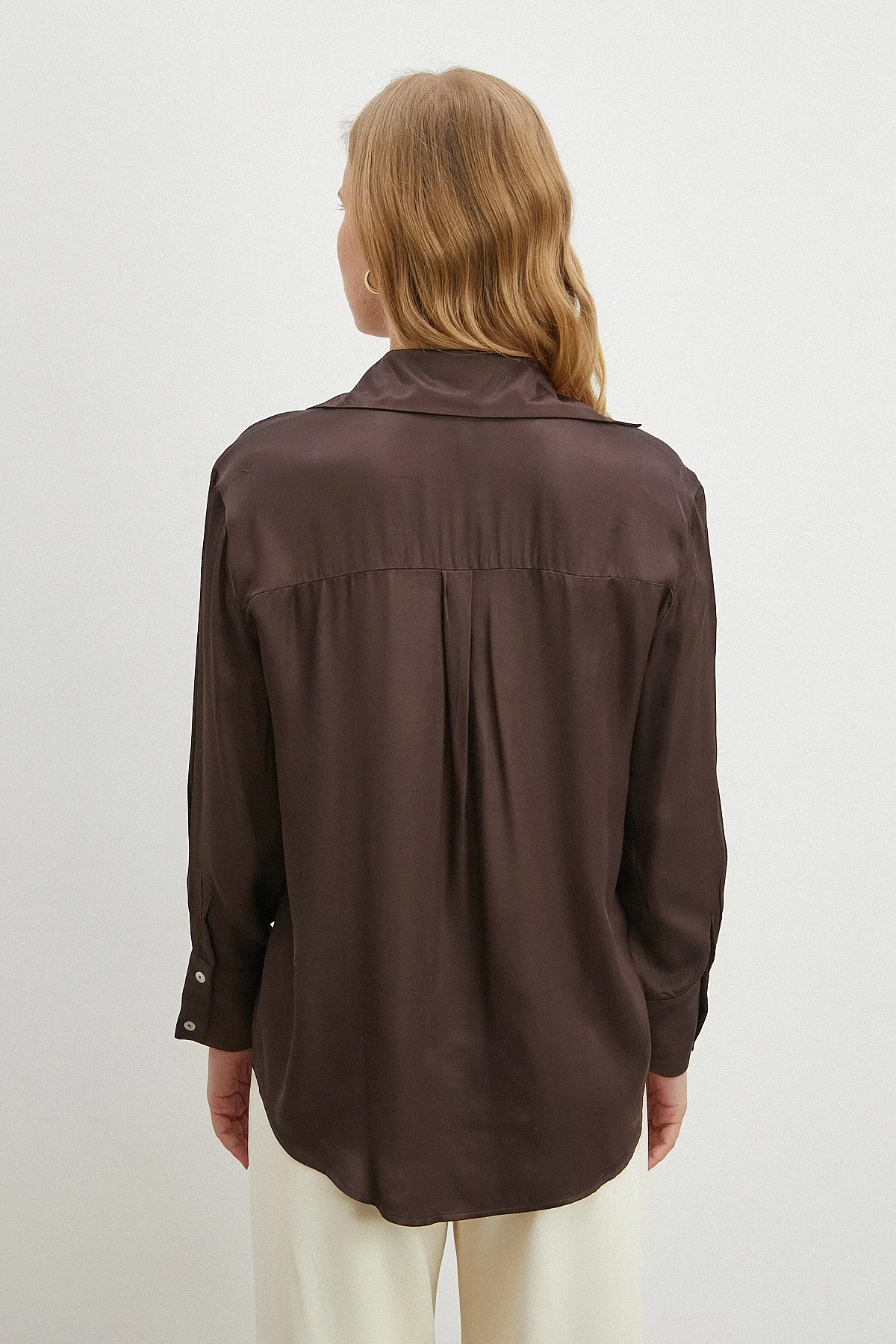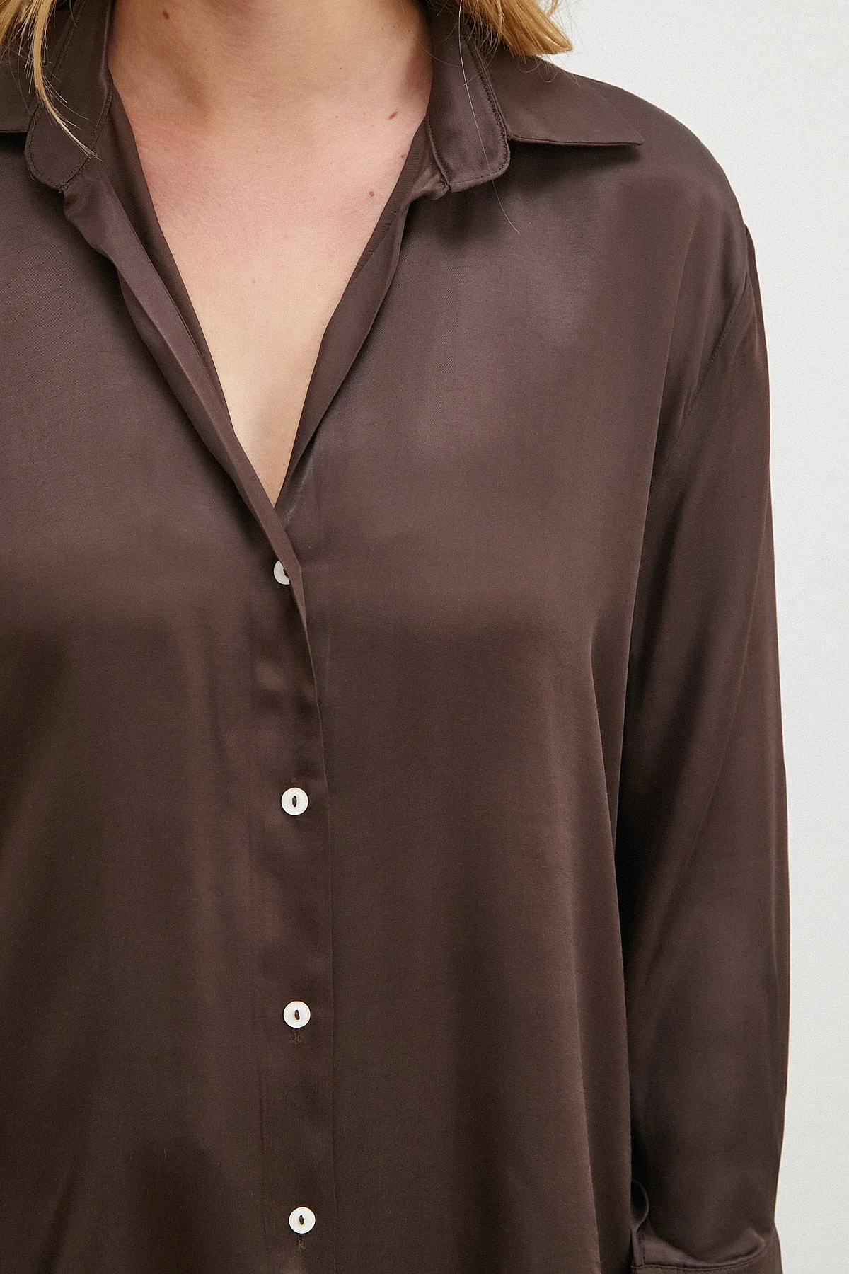 Viskon Saten Gömlek - Kahve