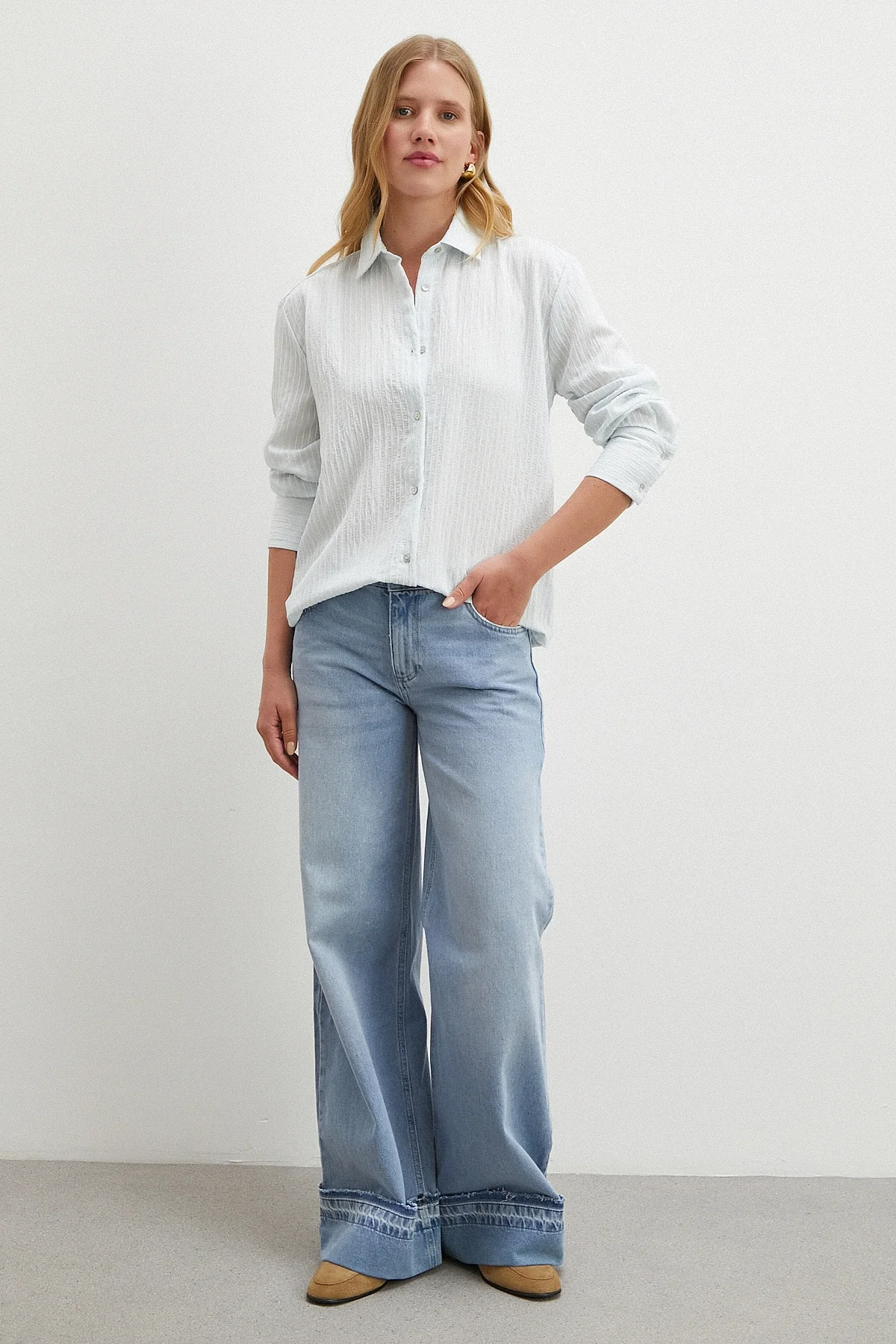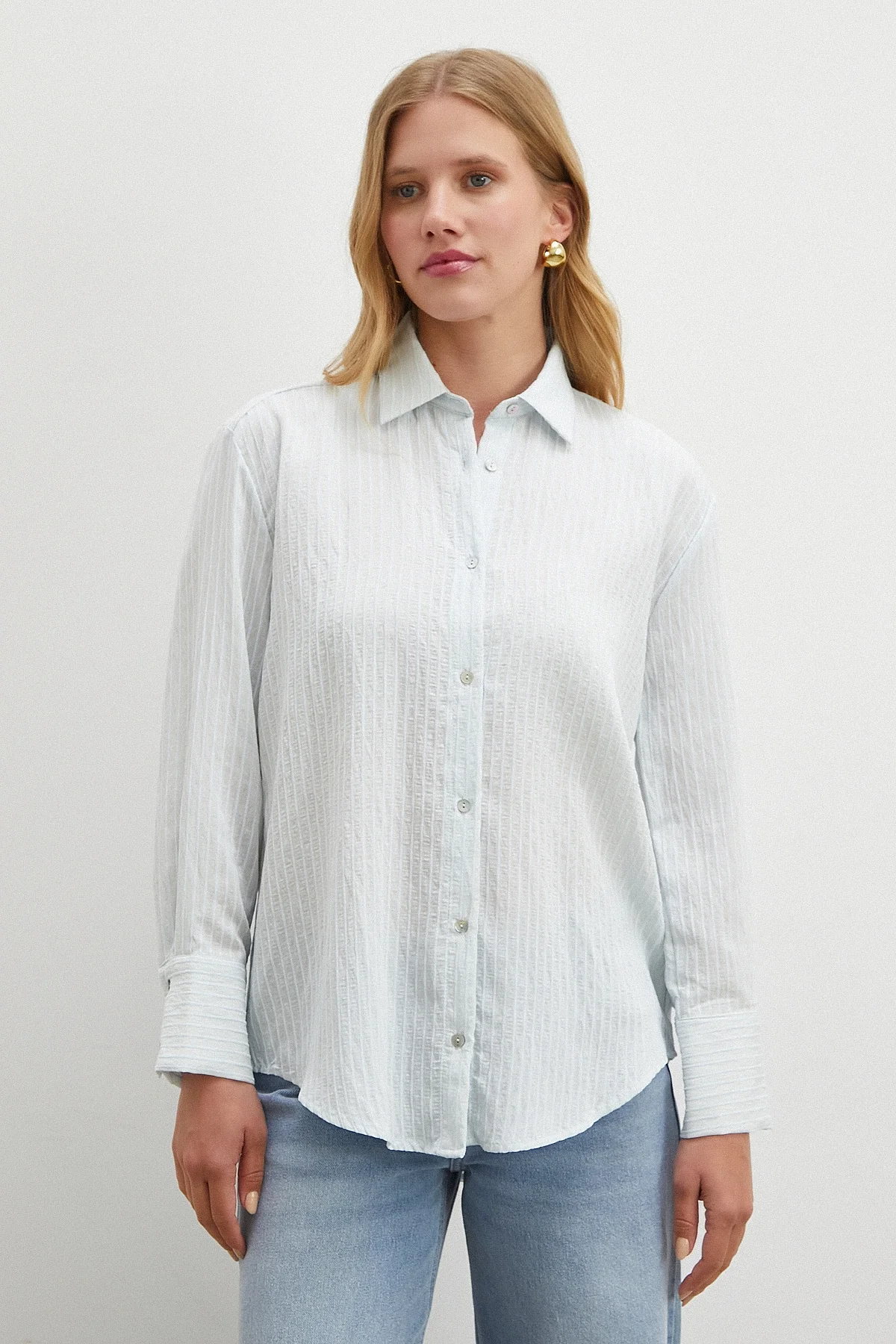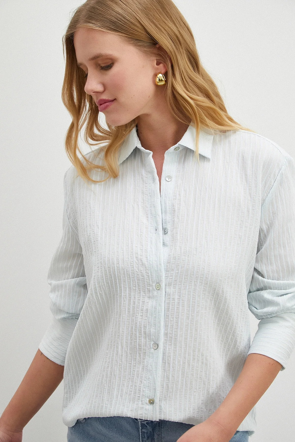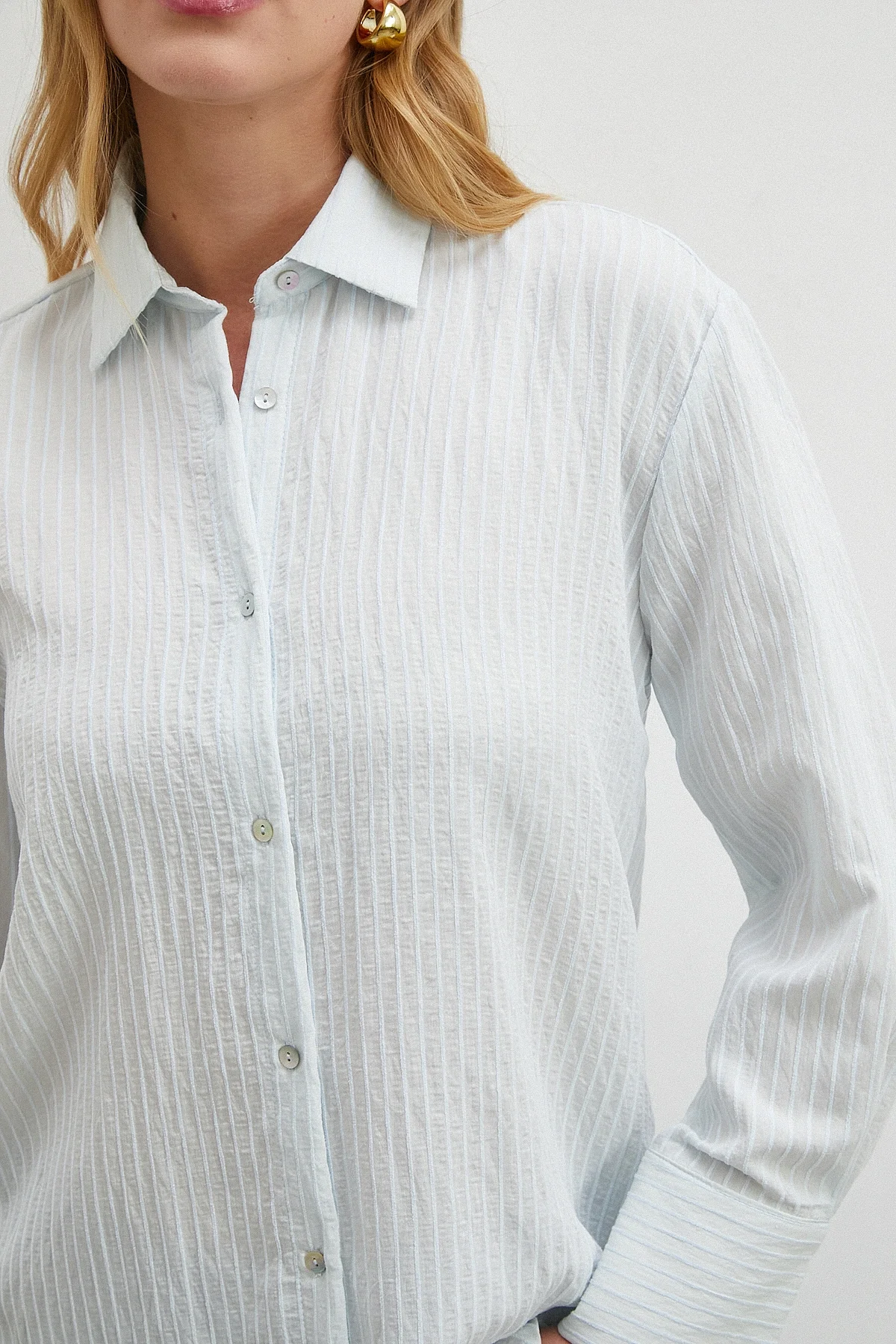 Çizgi Desenli Gömlek - Mavi