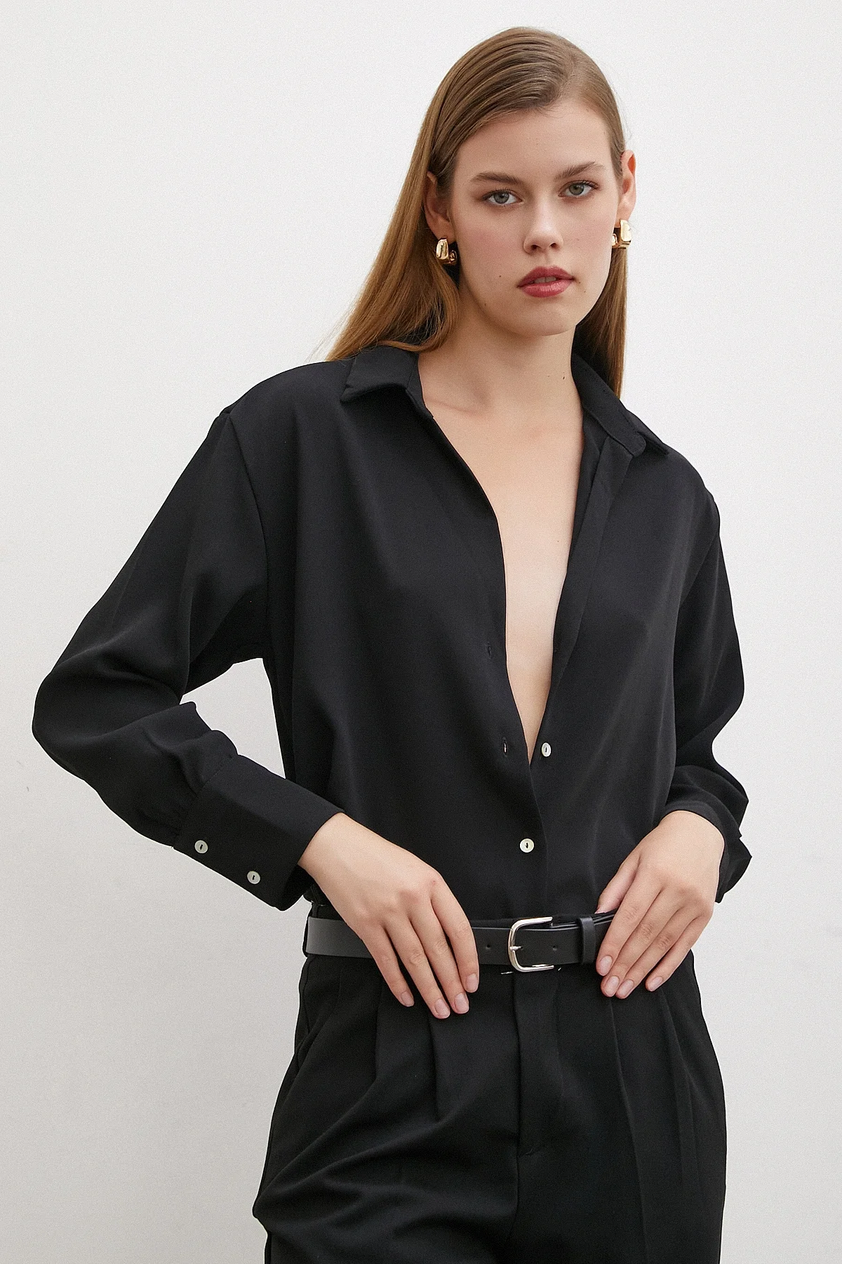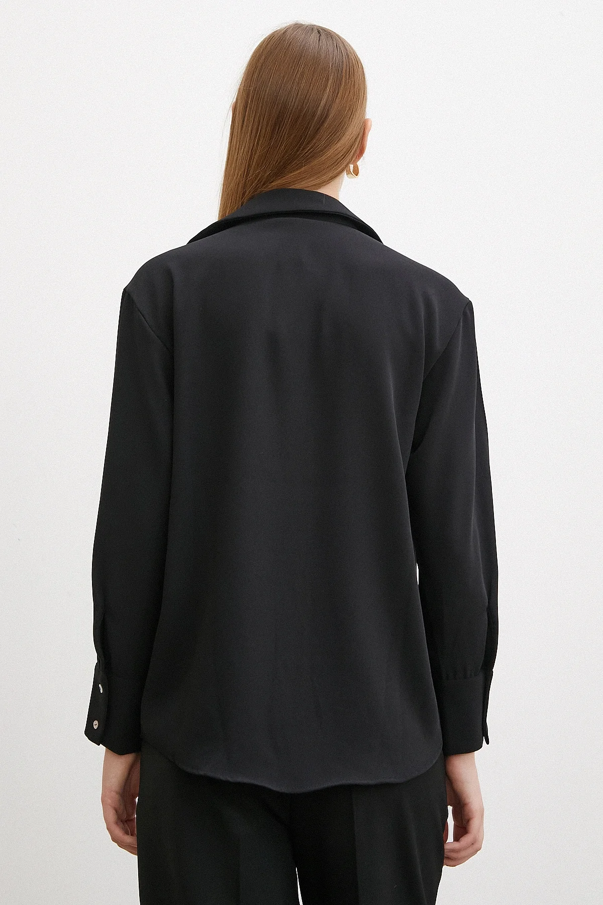 V Yaka Klasik Gömlek - Siyah