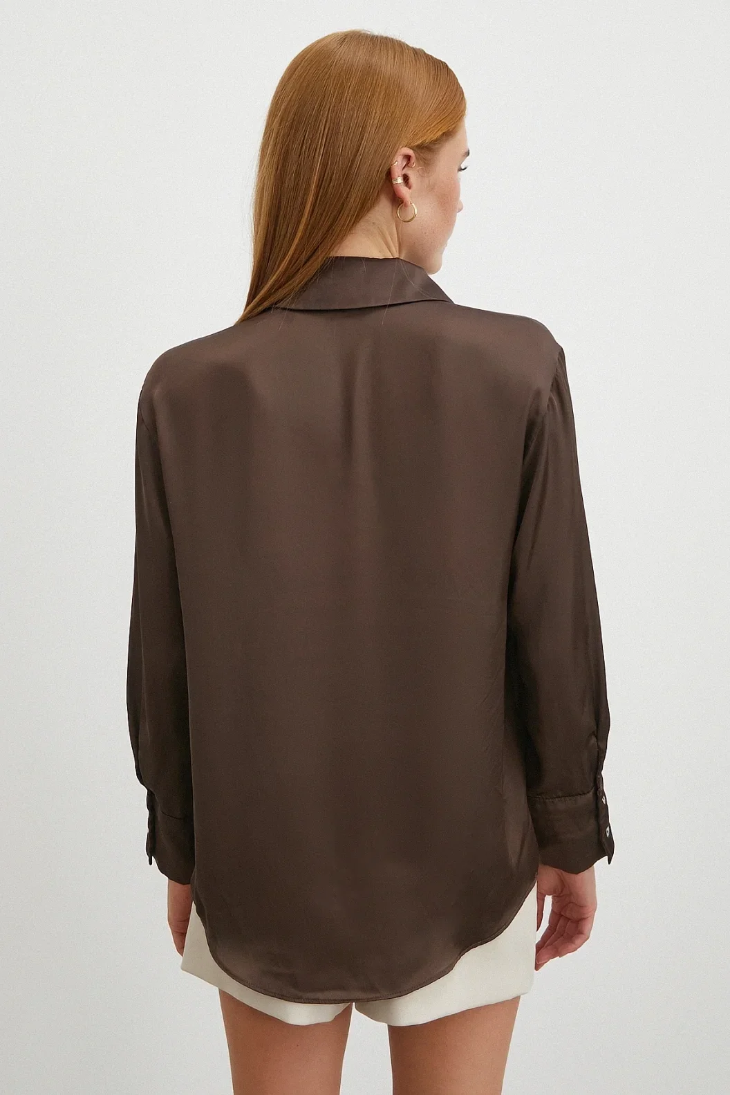 Basic Saten Gömlek - Kahve