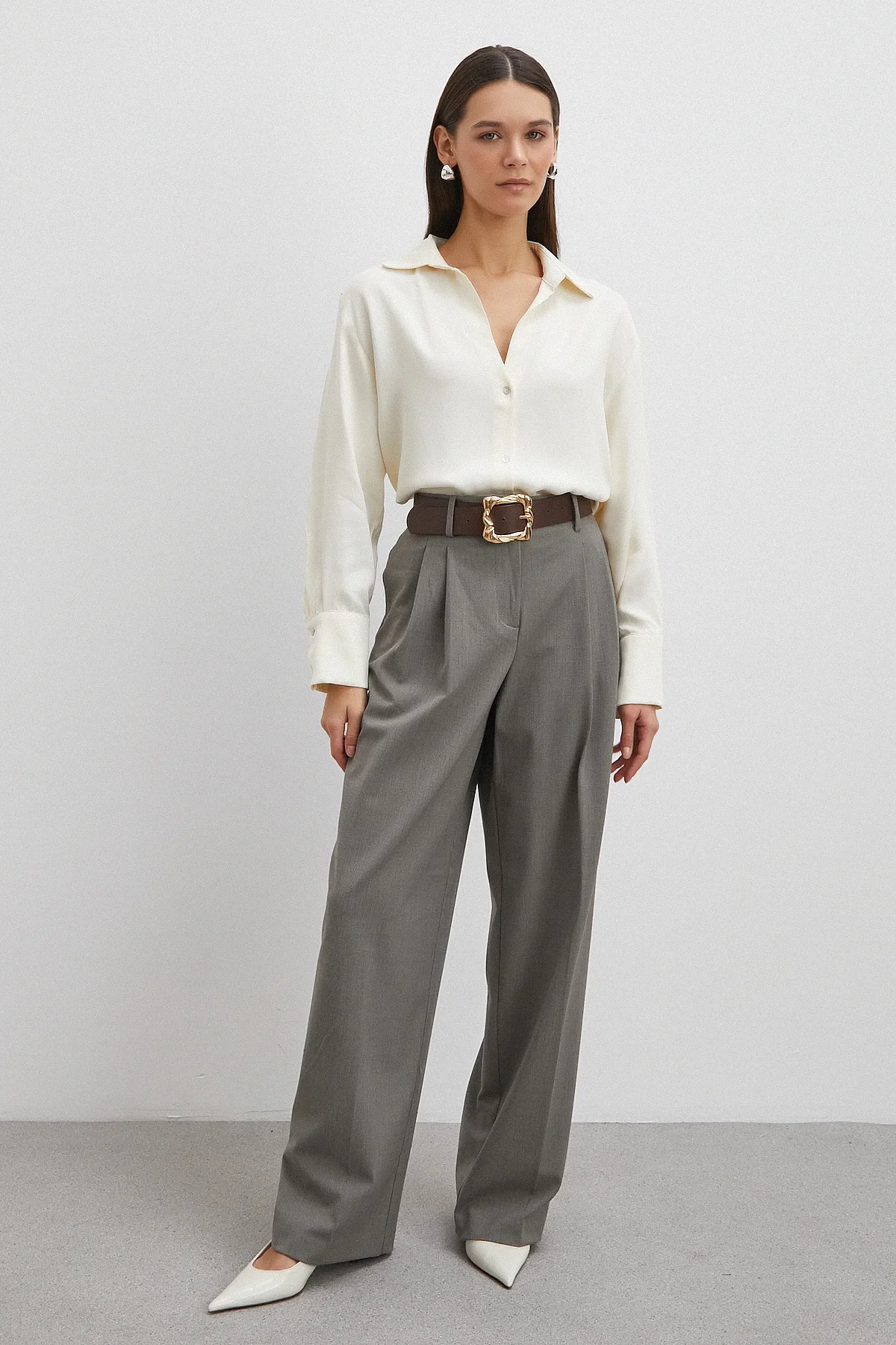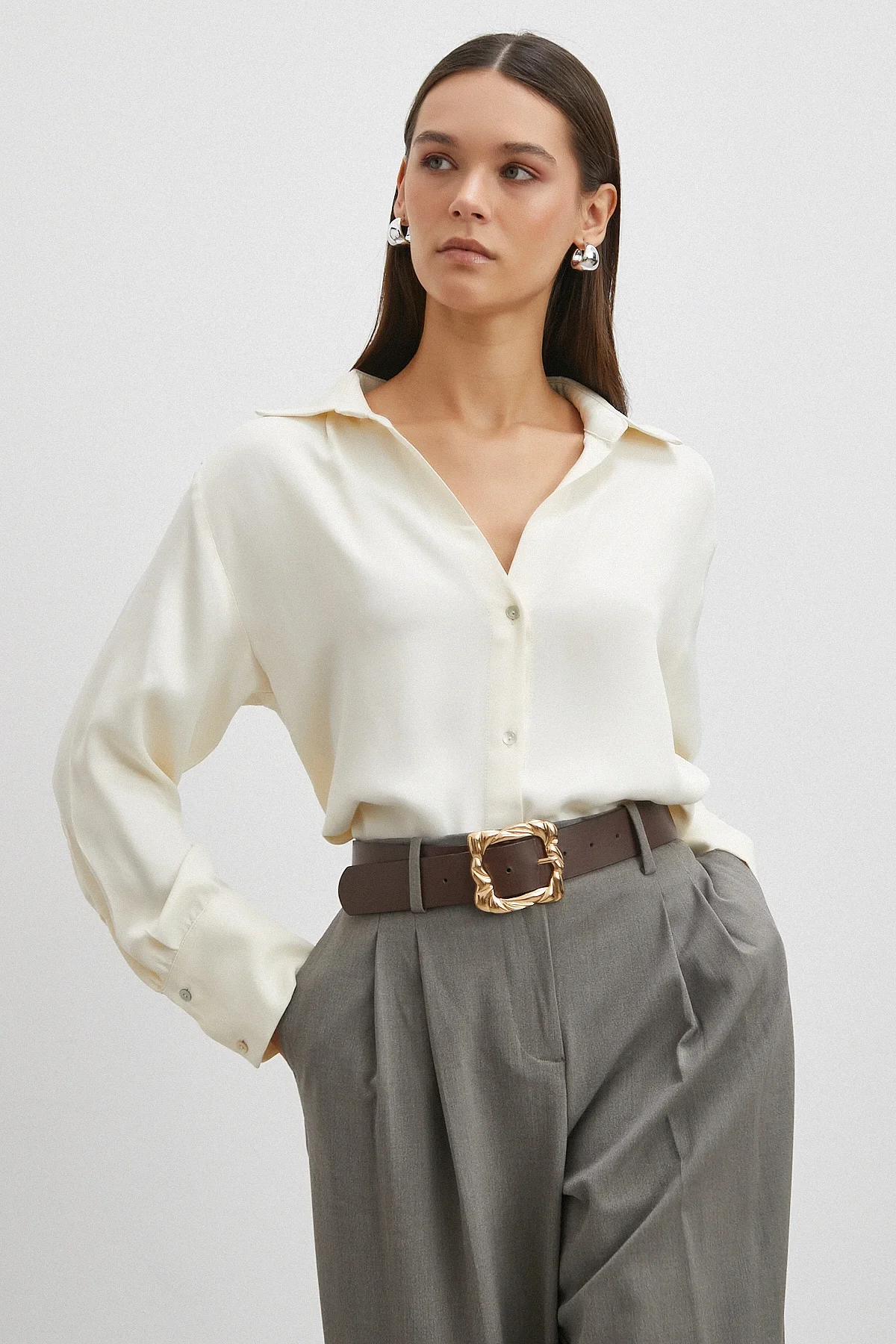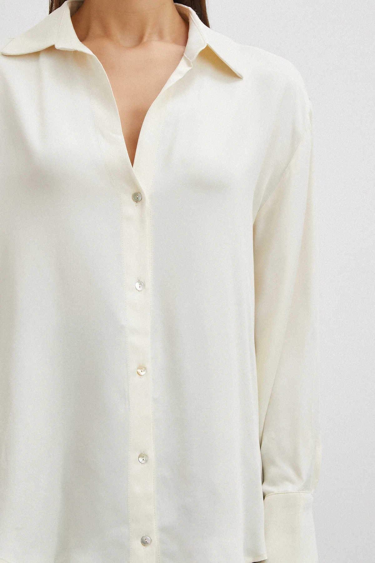Viskon Saten Gömlek - Ekru