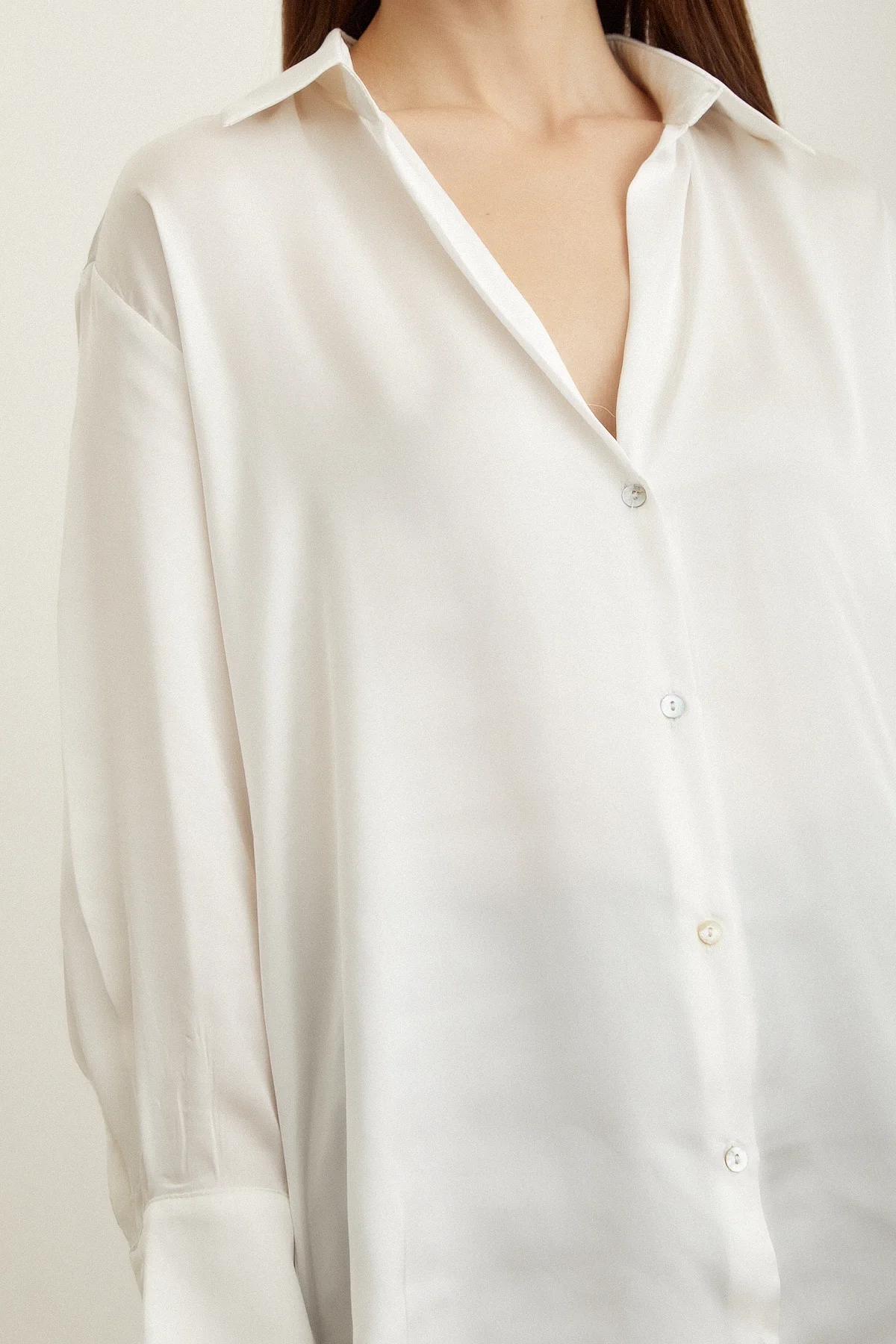 Basic Saten Gömlek - Kırık Beyaz