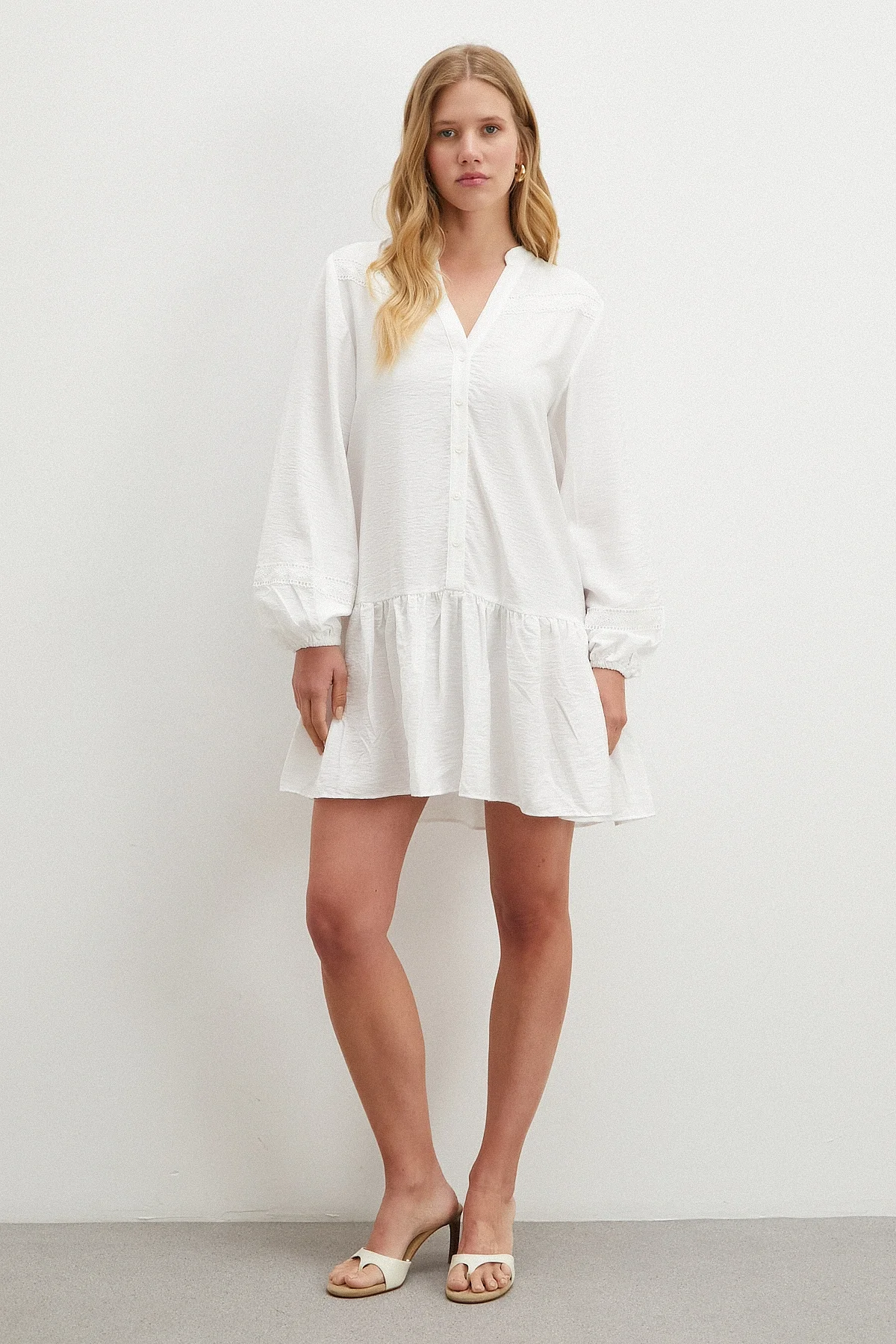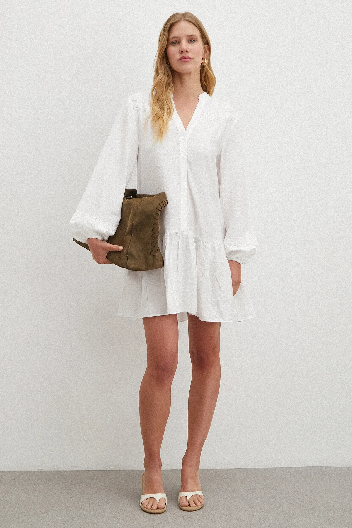 Dantel Detaylı Elbise - Beyaz