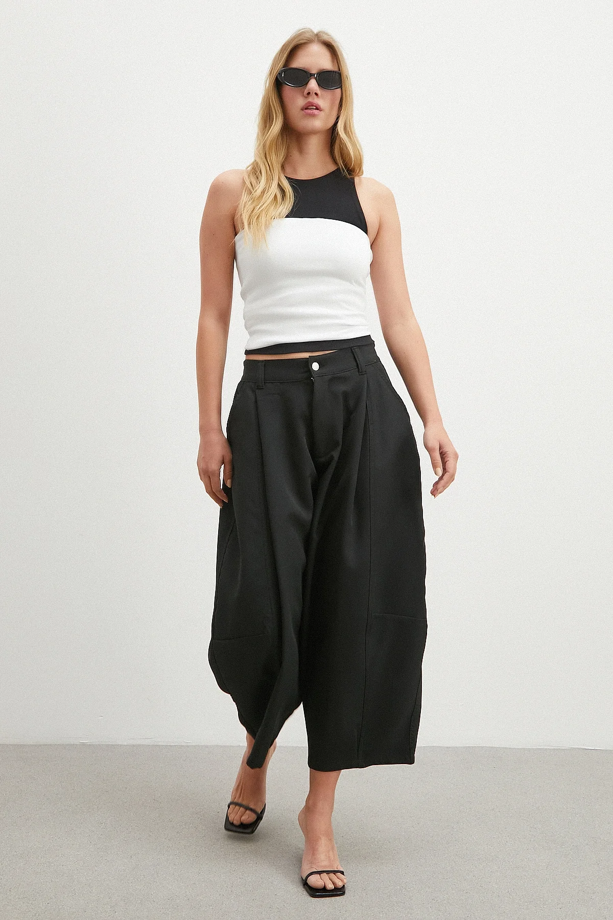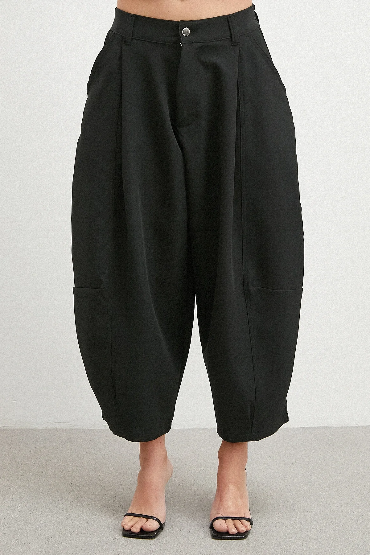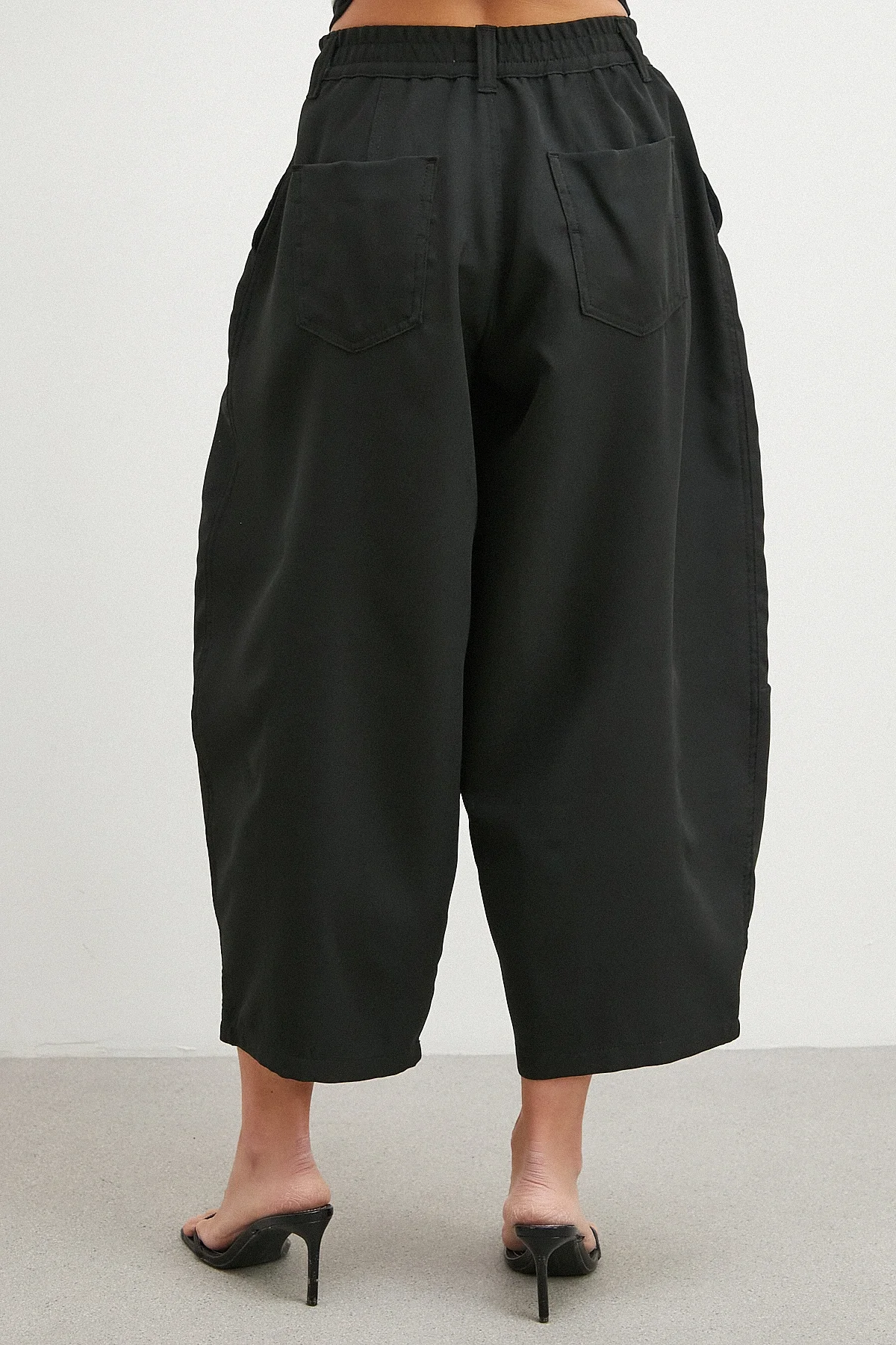 Paça Pileli Bol Kesim Pantolon - Siyah