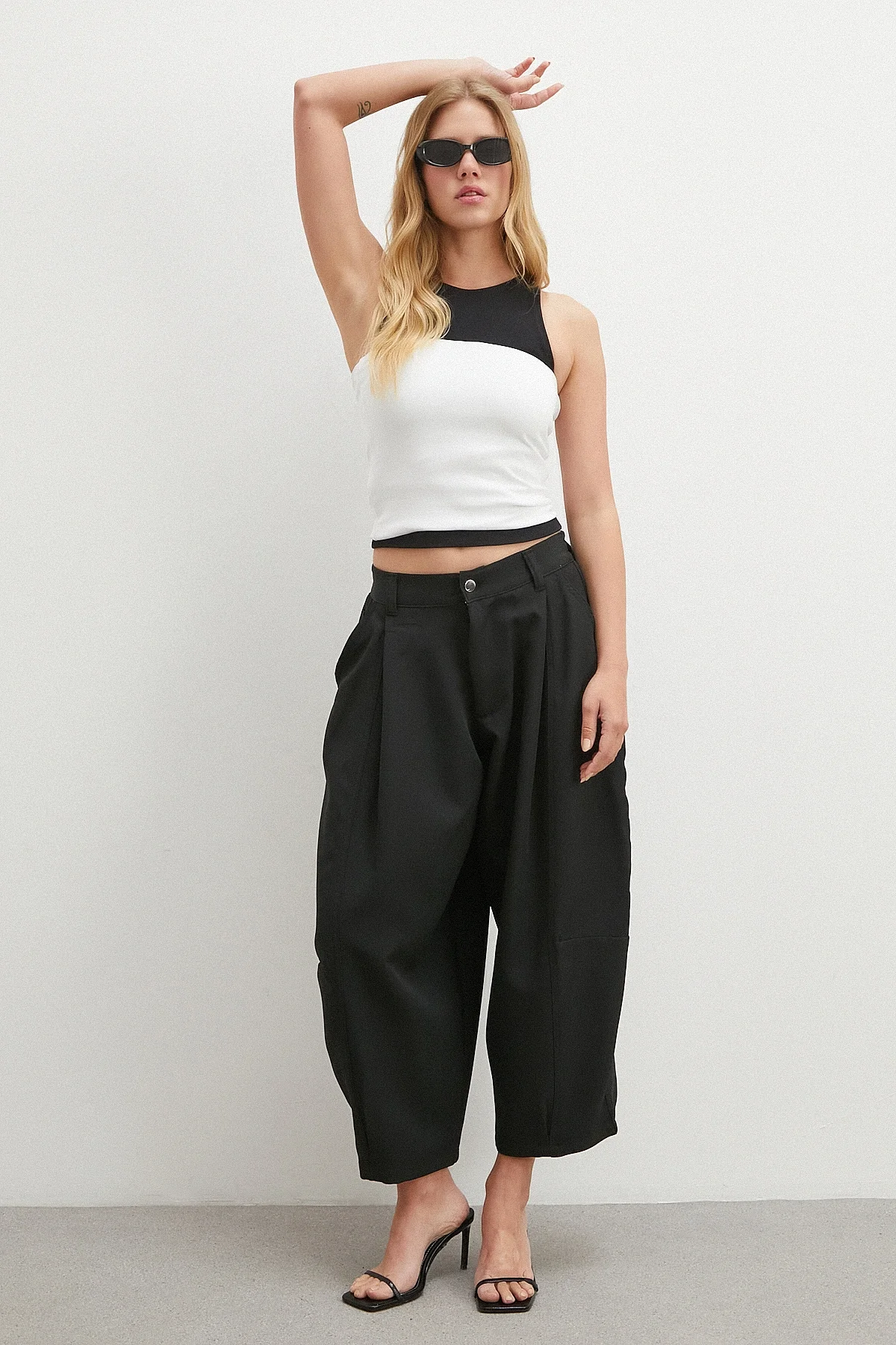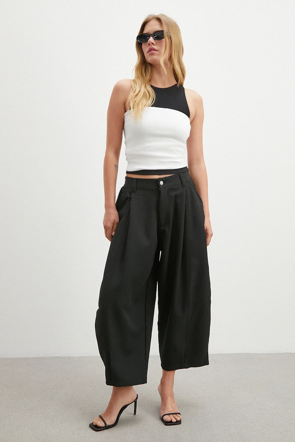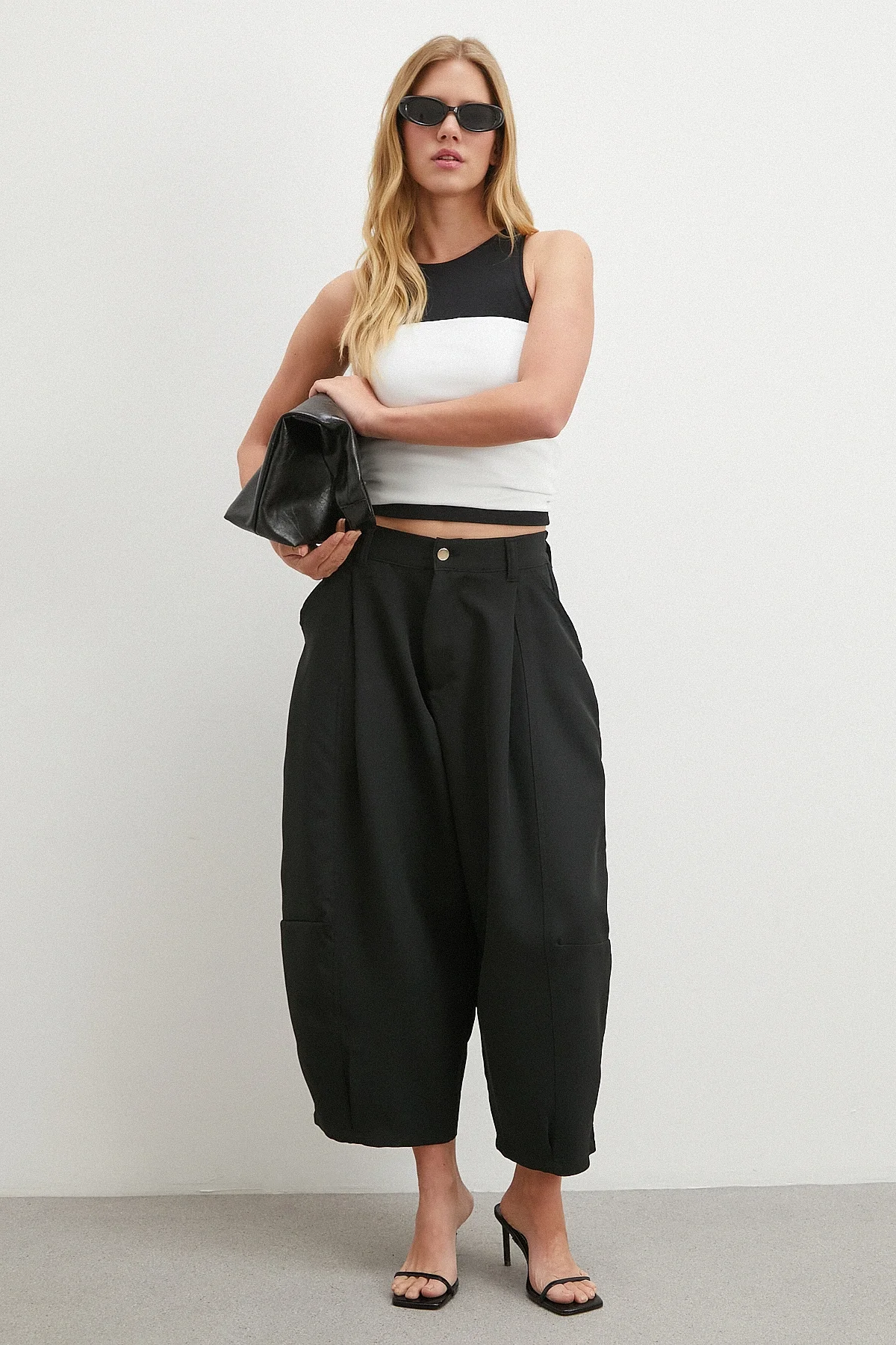 Paça Pileli Bol Kesim Pantolon - Siyah